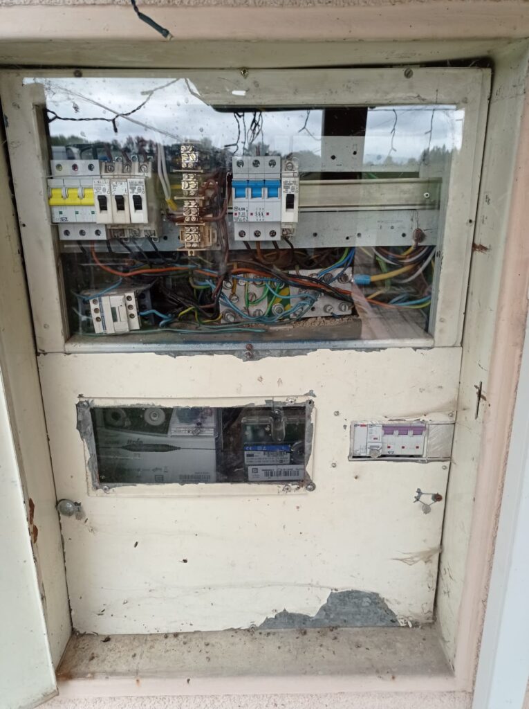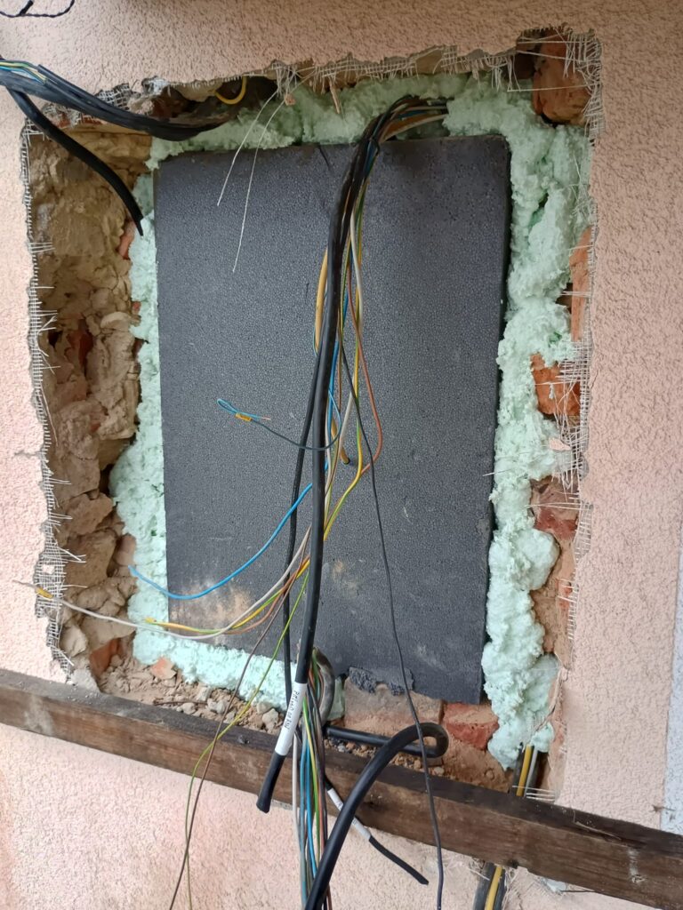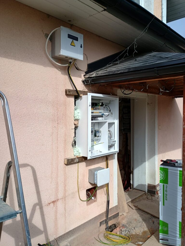 Výměna nevyhovujícího RE za RE FVE před zateplením. Výměna také HDS a instalace nové skříňky hlavního ochranného pospojování ( HOP )